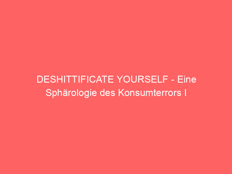 DESHITTIFICATE YOURSELF – Eine Sphärologie des Konsumterrors I