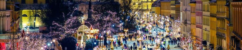 Eine verschneite polnische Stadtlandschaft, die die Gelassenheit zeigt, mit der Polen selbst herausfordernde Wetterbedingungen meistern.